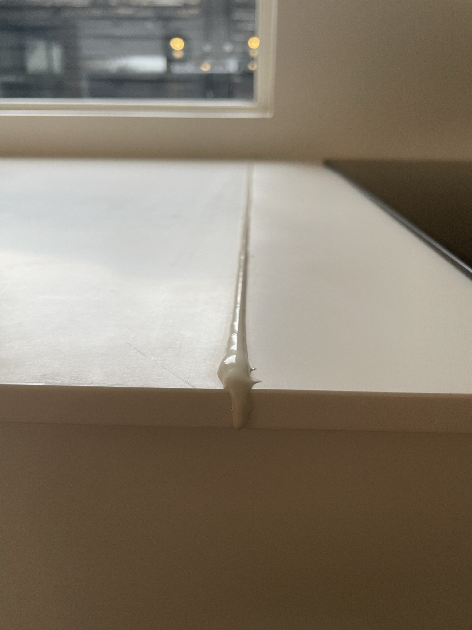 Bordplade på korpus (køkkenø) med vandfald/endegavl